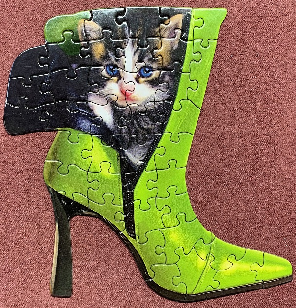 I love this boot! The color isn’t one I’d choose, but it was pretty darn fun to assemble. These small kitten puzzles are nice because there isn’t too much fur in each one to make it so challenging.