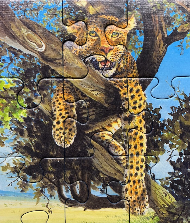 This isn’t a scene I would choose to puzzle in a larger piece count, it just isn’t my pile of pieces (or cup of tea as it were). But with only 100 pieces the muted colors and subject matter weren’t a problem to deal with. As an added bonus, once it’s been assembled and if it’s all there my “grandson” gets to have it. He’s gonna love this one.😀