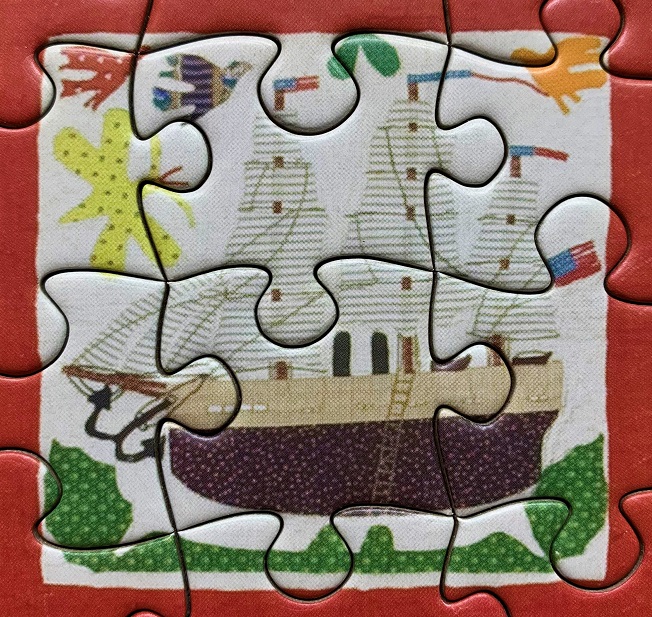 Long time readers know I love a puzzle with quilts, and this is an image of just one very old quilt – and a busy one at that. It was pretty difficult for only 300 pieces, and for some reason I decided to make it harder on myself by putting the box away and working without an image. Wow.