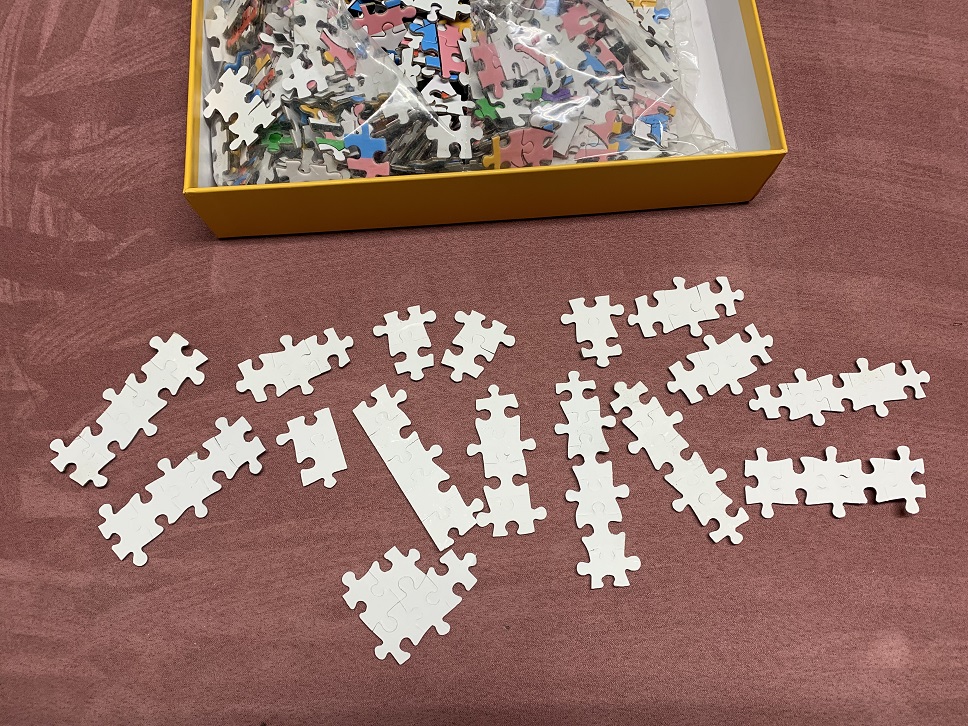 There are probably at least 200 pieces of the 1000 piece puzzle still attached, and they’re that way because the die didn’t cut all the way through. So much so that if I tried to get them apart I would damage them. In theory I could get an exacto knife and cut them apart, but it would probably take me an hour or two sitting at the board working on this puzzle before I could even start sorting it. It shouldn’t take all that work and effort on my part just to be able to start assembling a puzzle!