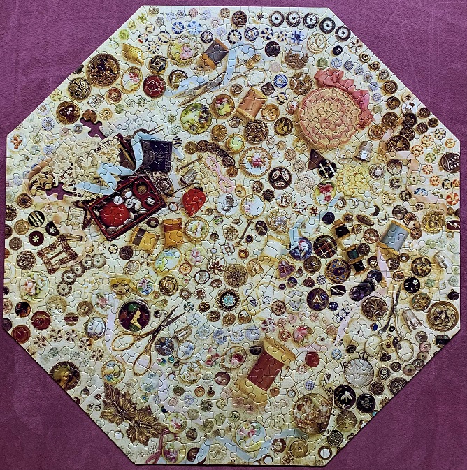 It’s such a bummer there were two missing pieces, but for a 45 year old puzzle, that’s to be expected I suppose. It was still so much fun to put together, and learning about so many different kinds of buttons was almost as entertaining as the puzzle!