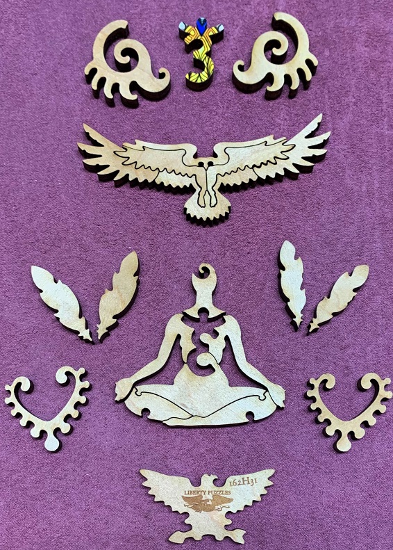 Well, I received my re-worked eagle chakra puzzle, and have finally succeeded in assembling the multipiece whimsy that represents the eagle itself – triumph!