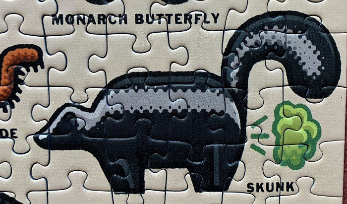 The way the skunk is depicted just makes me smile. This was my first time with artwork by Mario Zucca, and it was fantastic to assemble. There were plenty of words (which always is a bonus for me), and each animal image was so interesting and fun.