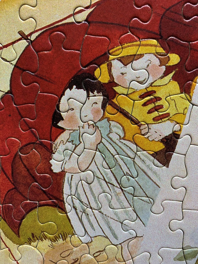 I had higher hopes for this image, there was something about it made me want the puzzle even though it’s a Ceaco. My thought process was that because it was a thrift store purchase I wasn’t really giving the brand any of my money, and the picture looked as though it would be entertaining to assemble. It wasn’t as fun as I’d hoped, but I still got my money’s worth – it was only a couple of dollars and I worked on it for a couple of days.