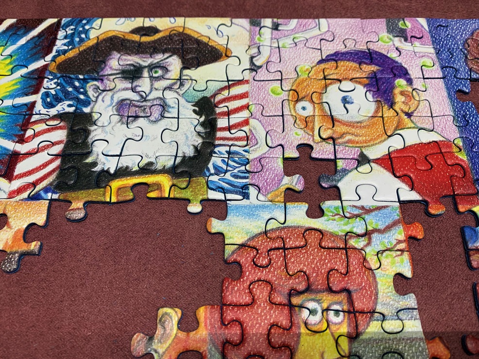 This very interesting and challenging image just grabbed me when I first saw it, and it’s going together really well. The artwork is very different – it almost looks as though it was done with a crayon! Still, I love a challenge, and a puzzle that is outside of the norm as well. It oughta be fun. 😉