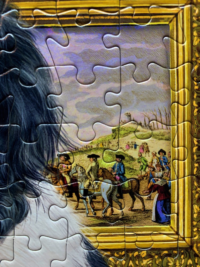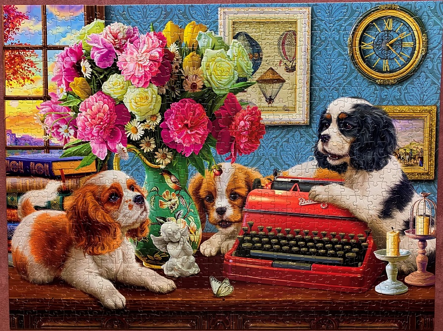 Such a great image – it was wonderful to assemble! Of course you know I couldn’t resist the dogs, but the rest of the image was perfect for a great puzzle as well. The typewriter wasn’t as easy as you might think, and the flowers were their very own special challenge. All in all it was a charming puzzle that was challenging but entertaining.