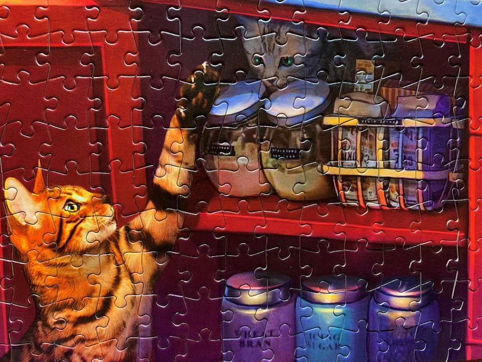 This beautiful image was perfect for puzzling, and I thoroughly enjoyed myself! Great colors, just enough dark areas so that it wasn’t too easy, and just a lovely picture all around. I’m wishing I had a piece of that apple pie right about now too. 🥧