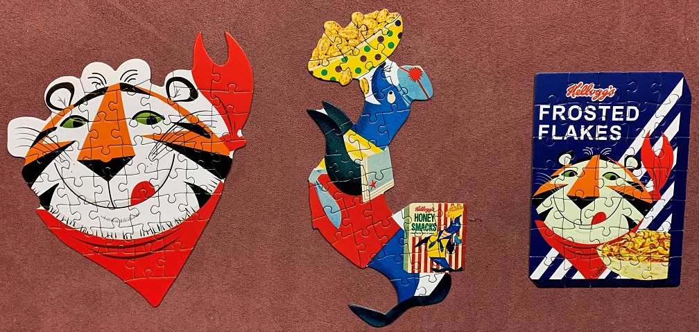 When this post starting forming in my brain it had me thinking about how my Grama (who instilled in me my love for jigsaw puzzles) used to work on her puzzles, and I’m amazed at where she chose to puzzle. She always sat in “her” chair in the living room and used a huge piece of cardboard that she placed on the big footstool in front of the chair. Thinking about how much leaning over that required, I’m stunned she didn’t develop back problems. When my sisters and I would spend the night at her house there were many times when we went to bed and Gram was working on a puzzle; when we got up in the morning she was still sitting there in her pajamas in front of the board and the puzzle was much closer to completion. I used to think to myself that I couldn’t wait to be a grownup so I could stay up all night if I wanted to and work on puzzles. (I have done so on several occasions, and it is very nice not to have to answer to anyone about my bedtime, that’s for sure.😉)
