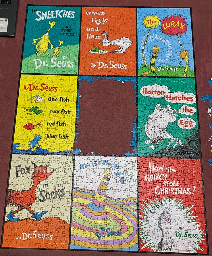 When he completed the Dr. Seuss puzzle, he went and got all the books he had and laid them on top, in the same way as he put those cases together all those years ago. His mom sent me a picture of that too, and said “Just like your puzzle and the movies.” It was so sweet it was almost heartbreaking!