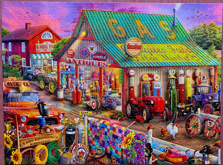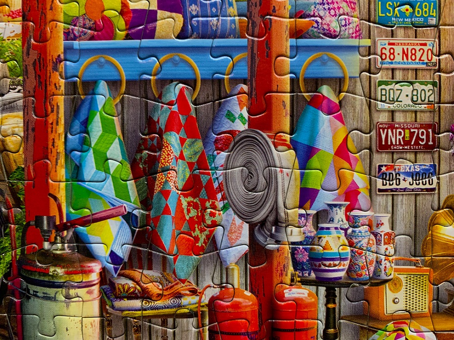 Regular readers know I just can’t resist a puzzle with quilts; and there were several in this image. The colors and patterns were absolutely beautiful!