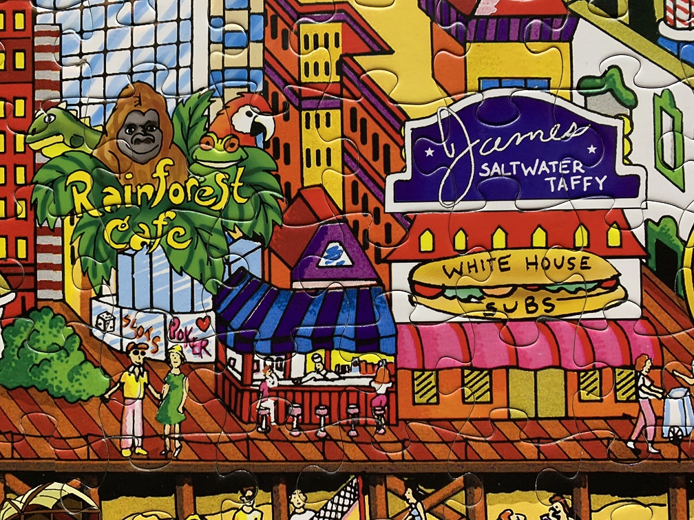 The whole puzzle was just all around fun. I’ve never been to Atlantic City, but this boardwalk puzzle makes it look like fun.