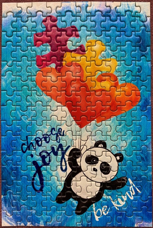 Adorable image that made for both easy and difficult puzzling. The center was easy, the background and border were a bit more difficult – still, overall it was great fun. 🎈