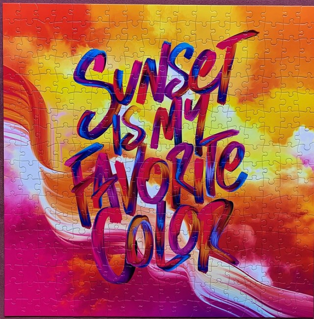 Colorful, bright, fun but challenging – all true. I really enjoyed this image, and it went together more easily than I thought it would. These mini puzzles are getting done quicker every time, or so it seems.