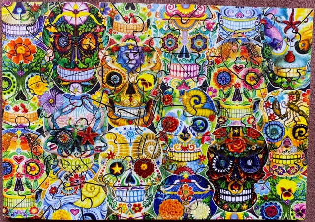 Beautiful image that was a bit difficult at first, but once I got started it began to flow a little more easily. Decorative skulls/sugar skulls are absolutely gorgeous if you ask me, and they made for a nice little puzzle.