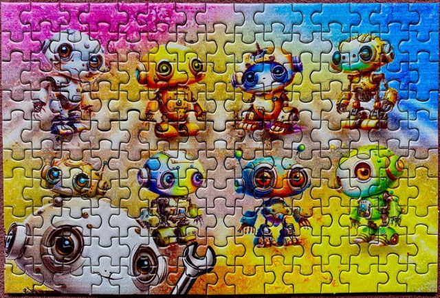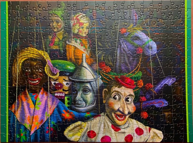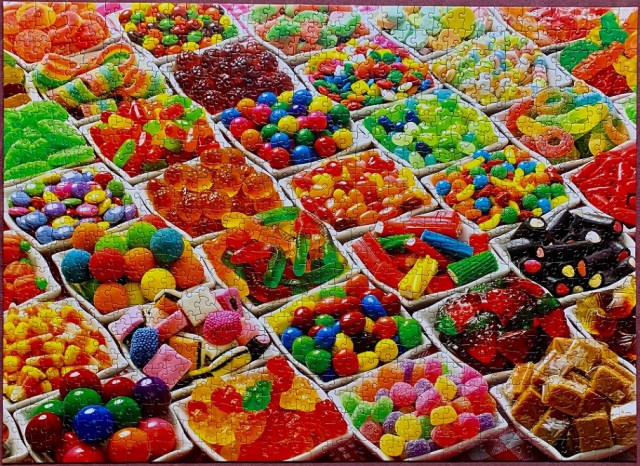 Absolutely adorable image that made for a fun, yet challenging assembly. The bright colors and silly artwork were a perfect way to end this month of puzzling; plus it’s heralding next month and my favorite holiday. Excellent puzzle!