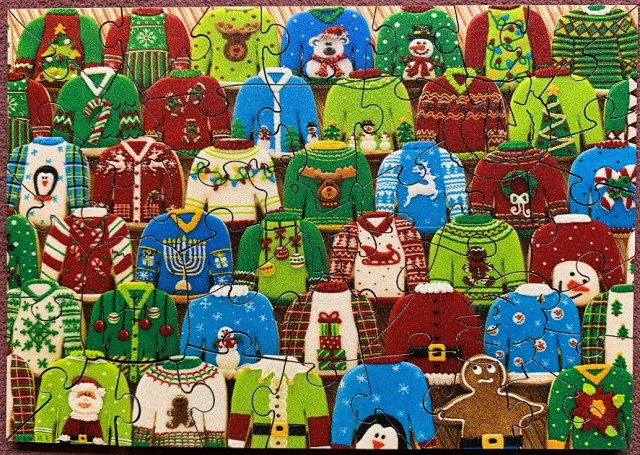 This puzzle was great fun and went together pretty quickly. I started it while helping to make dinner, and it was finished before I went to bed. As I type this it is getting it’s second coat of glue, and it’ll be ready soon to be hung as a holiday decoration!