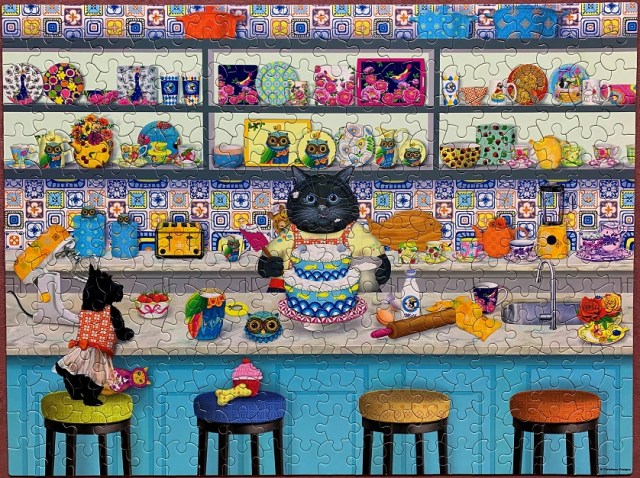 Cute, busy, fun to assemble puzzle that was perfect for having something to do while waiting for my new puzzles to arrive. I knew it wouldn’t take long but would be an entertaining sit-down – and it was. Love the adorable image.