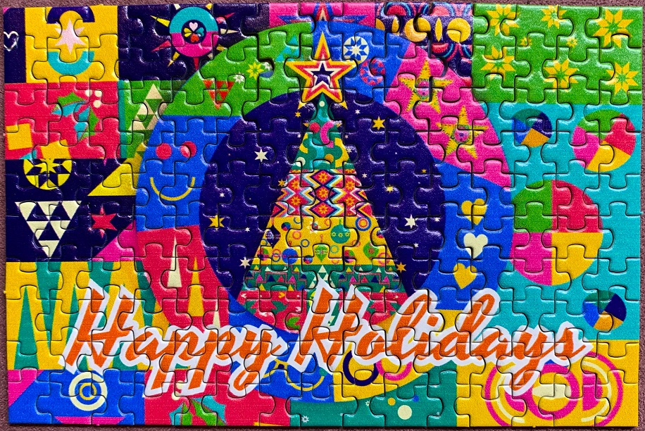 In a larger piece count I would be all over this image, all the colors and shapes are absolutely my pile of pieces! With only 150 pieces and it being a micro puzzle, it was more challenging than expected. Your brain tells you you’re looking for a certain color or shape, but it changes so quickly into the next shape or color that your eye goes right past the correct piece and lands on what you think you should be looking for. Normally I puzzle without looking at the image on the box (or tube), and that made for a longer assembly than would usually be normal for a puzzle of this size.