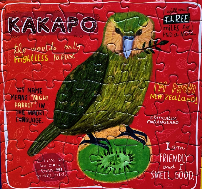 Loved the look of this section, and how the Kakapo’s face looks something like the kiwi it’s perched on. Plus, I wonder why they smell good – that’s so interesting to me – is it their diet or how they preen themselves? Plus they live to be more than 90 years old, that’s amazing!
