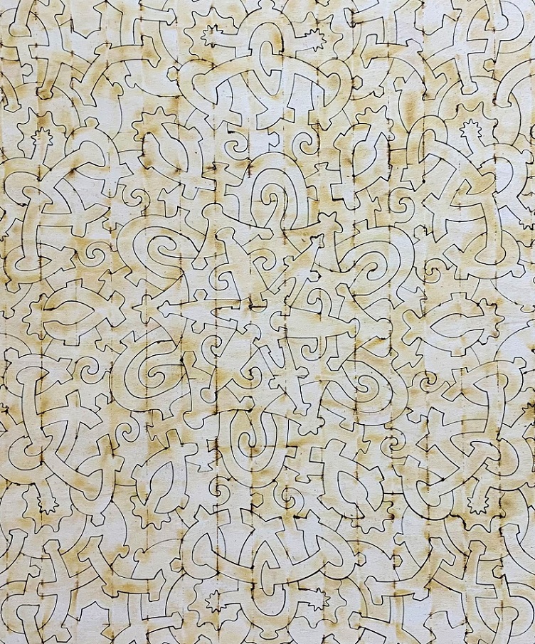 This was my third puzzle with an image by this artist, and I am completely smitten with her work – it makes for such fun puzzling! And I also have to give a shout out to the designer of the pieces, Chandler Millwood (who designed all three of Nadieh’s puzzles), whose design was like artwork in itself. Stunning!