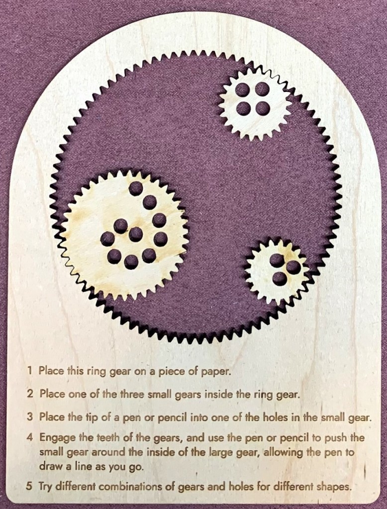 It came with it’s own tiny little wooden Spirograph! Does anyone remember those from when you were younger? I certainly do, and let me tell you there have been a LOT of little pictures made with this already. I have to fess up and tell you that it didn’t occur to me until I was probably 50% through the assembly that all the little images on the puzzle are ones that you could make with a Spirograph. I was looking at the shapes and putting together colors and suddenly realized that all the loopy, swirly, interesting shapes are ones you could make with the toy in the box. DUH!