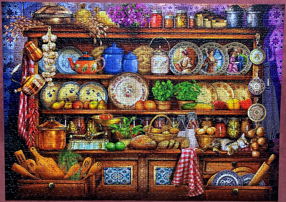 Wonky fit aside, it was a beautiful image that made for truly fun puzzling. I started it late at night and finished by 9:00 the next morning. It makes me wish I had more puzzles with his artwork here, this one was fun!