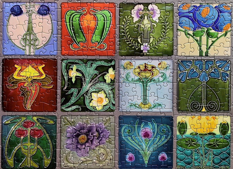 The quality of this puzzle was amazing, and really I enjoyed working with it. The cut is actually a modified ribbon cut (Cobble Hill calls it random/quirky), with quite a few interestingly shaped pieces that made it extremely entertaining to assemble. The fit was excellent; entire sections could be picked up easily to move them around. The finish is matte which helps with the glare caused by artificial overhead lighting. There was quite a bit of puzzle dust, but that seems to be an increasing problem with every company lately. I don’t hold it against them, because it doesn’t detract from the enjoyment of the assembly for me.