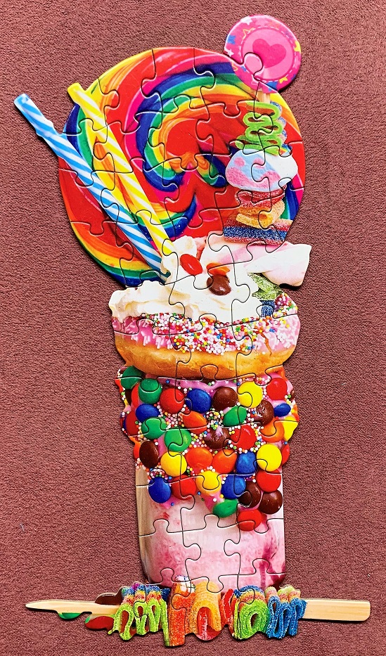 Alas, today is the end of the freak shakes. While the images are so bizarre to me, the puzzles themselves were a joy to put together. Little puzzles I can do quickly have become some of my favorites. While I have completed (very) large piece count puzzles, as I age the smaller ones seem to bring me more pleasure. These sets full of a dozen or more small puzzles to assemble bring a smile to my face, and give me a sense of accomplishment with each completed image. I’m in love with them!