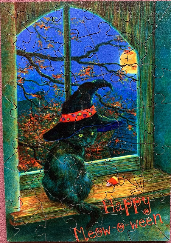 This is a repeat of this puzzle, it was posted two years ago on this day. But there weren’t any Halloween puzzles here for me to do in time for the holiday, so you’re all getting a repeat. On the positive side, the picture is much better this time, there’s a lot less glare. It’s also much easier to see that the candy corn is actually a mouse in a costume. 🐭