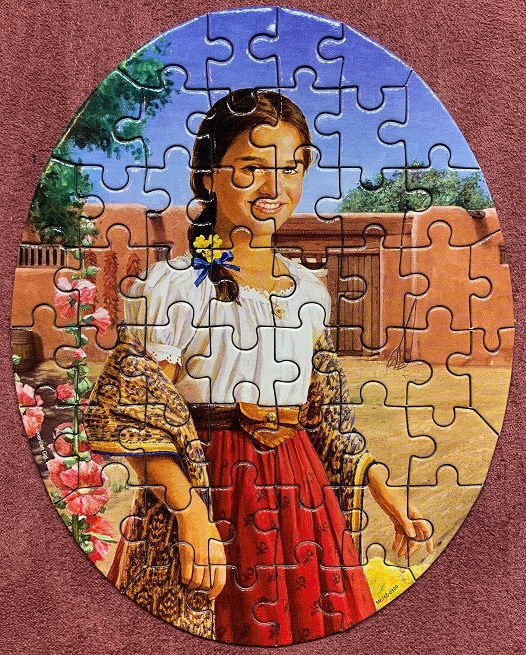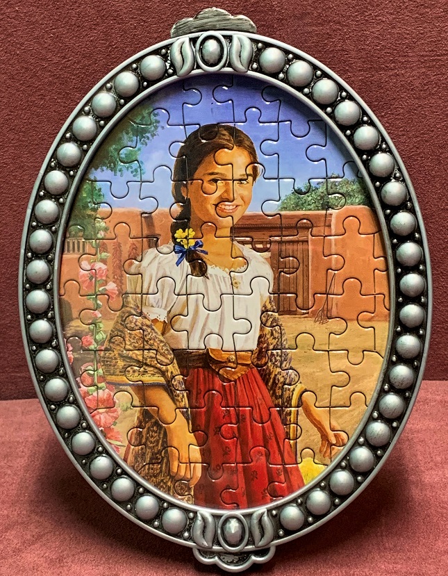 There were two American Girl puzzle sets at the thrift store, and this is the second set that I’ve assembled. The first one, Josefina, was put together in March of last year. That one was complete, and honestly was a little bit better in the quality department than this one.