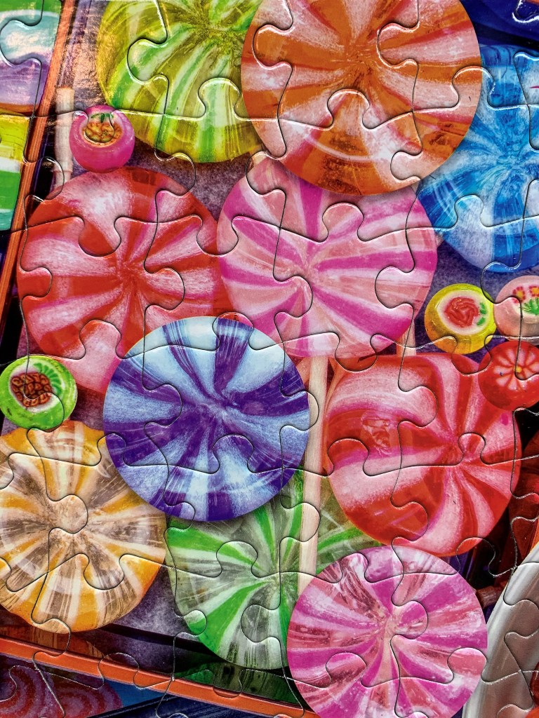 This bright, beautiful, colorful puzzle was truly a joy to assemble. I always enjoy having blocks or sections of color or patterns to work with, and this was perfect for me! 💜💛🧡