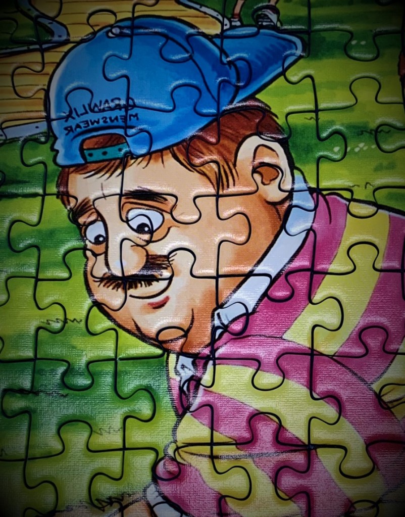 This one’s been hanging around my house for about…..seven years or so. Oh my! It’s been constantly moved down on the list of puzzles to be done, because I have this irrational dislike of Christmas puzzles. Even though I know that images by Geoff Tristram are always entertaining and funny it still took me forever to get this one done.