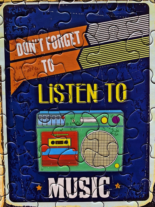 Within a few moments of starting to assemble the edge the tightness of the fit showed up – 10 pieces put together and the straight edge was curling up because of it. I expected the fuzzy image, so that wasn’t a surprise. Even with all these problems, because it was a collage with an image that was pleasing I still enjoyed myself and finished this puzzle pretty quickly.