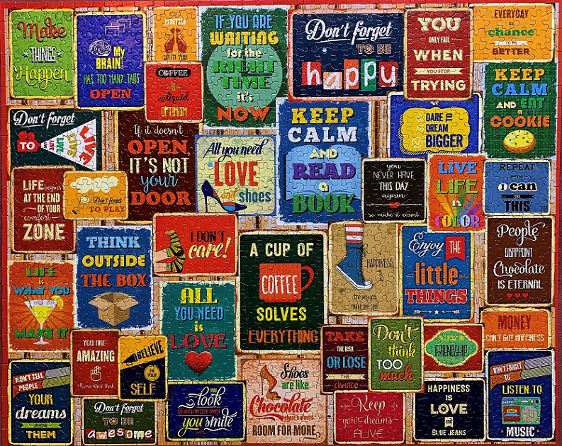 As far as the image goes, a lot of these words of wisdom are your average clichés, but some of them I’d never heard or read before. Regardless, it was entertaining and I enjoyed myself even if it was a little too quick to go together. (I think if it had been a little more challenging I would have been able to spend extra time and enjoy it even more). But honestly, finding the perfect puzzle image that is just the right amount of fun/difficulty is pretty rare; so I don’t hold it against anyone that this was a little too easy for me.